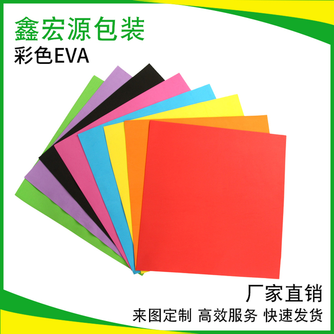 EVA片材的特点 材料:eva 颜色:黑色 白色 彩色 规格:来图定制 产品特性:美观 防震 防摔 抗压 防磨损 EVA的 特点: EVA树脂的特点是:具有良好的柔软性,橡胶般的弹性,在-50℃下仍能够具有较好的可挠性,透明性和表面光泽性好,化学稳定性良好,抗老化和耐臭氧强度好,无毒性。与填料的掺混性好,着色和成型加工性好。 耐水性:密闭泡孔结构、不吸水、防潮、耐水性能良好。 耐腐蚀性:耐海水、油脂、酸、碱等化学品腐蚀,抗菌、无毒、无味、无污染。 加工性:无接头,且易于进行热压、剪裁、涂胶、贴合等加工。 防震动:回弹性和抗张力高,韧性高,具有良好的防震和缓冲性能。 保温性:隔热,保温防寒及低温性能优异,可耐严寒和曝晒。 隔音性:密闭泡孔,隔音效果好